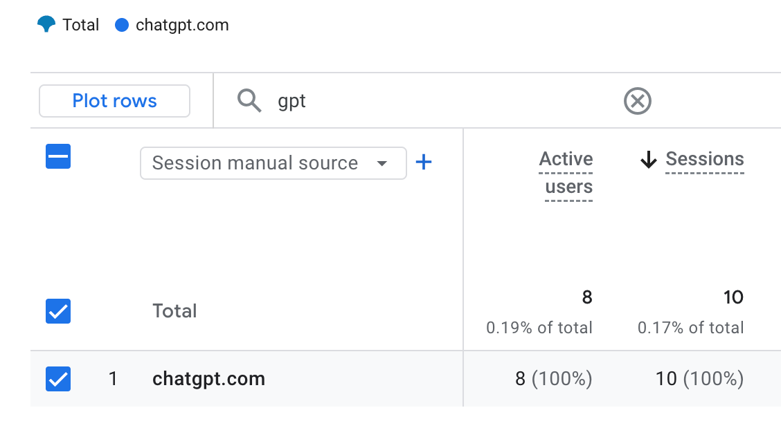 While nothing to be jumping about, it’s still really cool to see ChatGPT starting to drive impressions (last 90 days via Google Analytics) to my startup’s website: